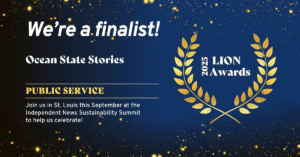 Honor comes in public service category NEWPORT – Ocean State Stories has been named a finalist in the 2025 LION Publishers Sustainability Awards contest. The contest is sponsored by LION, or Local, Independent, Online News, an organization with more than 575 members in the U.S. and Canada. “We received an incredible 250 award submissions this year, and while many were truly impressive, yours stood out,” LION wrote this week in an email to Ocean State Stories. “Your outstanding work is making a meaningful impact, both in your community and across the independent journalism ecosystem.” Ocean State Stories is a finalist … Continue reading Ocean State Stories named finalist in national contest
