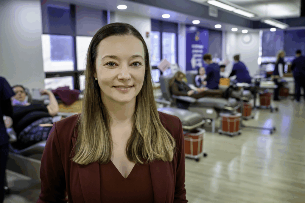‘In my 22 years, I’ve never seen a response like this,’ Rhode isldn Blood Center Executive Director Nicole Pineault says of the outpouring of blood donations since Saturday’s mass shooting on the Brown University campus. (Photo by Michael Salerno/Rhode Island Current)